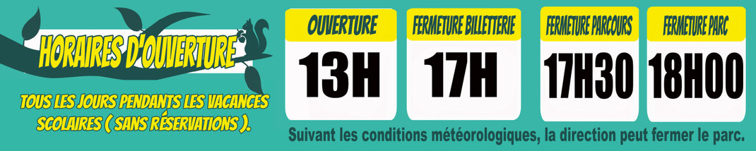 Le parc est ouvert tous les jours pendant les vacances de la Toussaint sans réservation et en illimité de 13h à 18h00 (sous réserve de la météo) Attention la billetterie ferme à 17h00